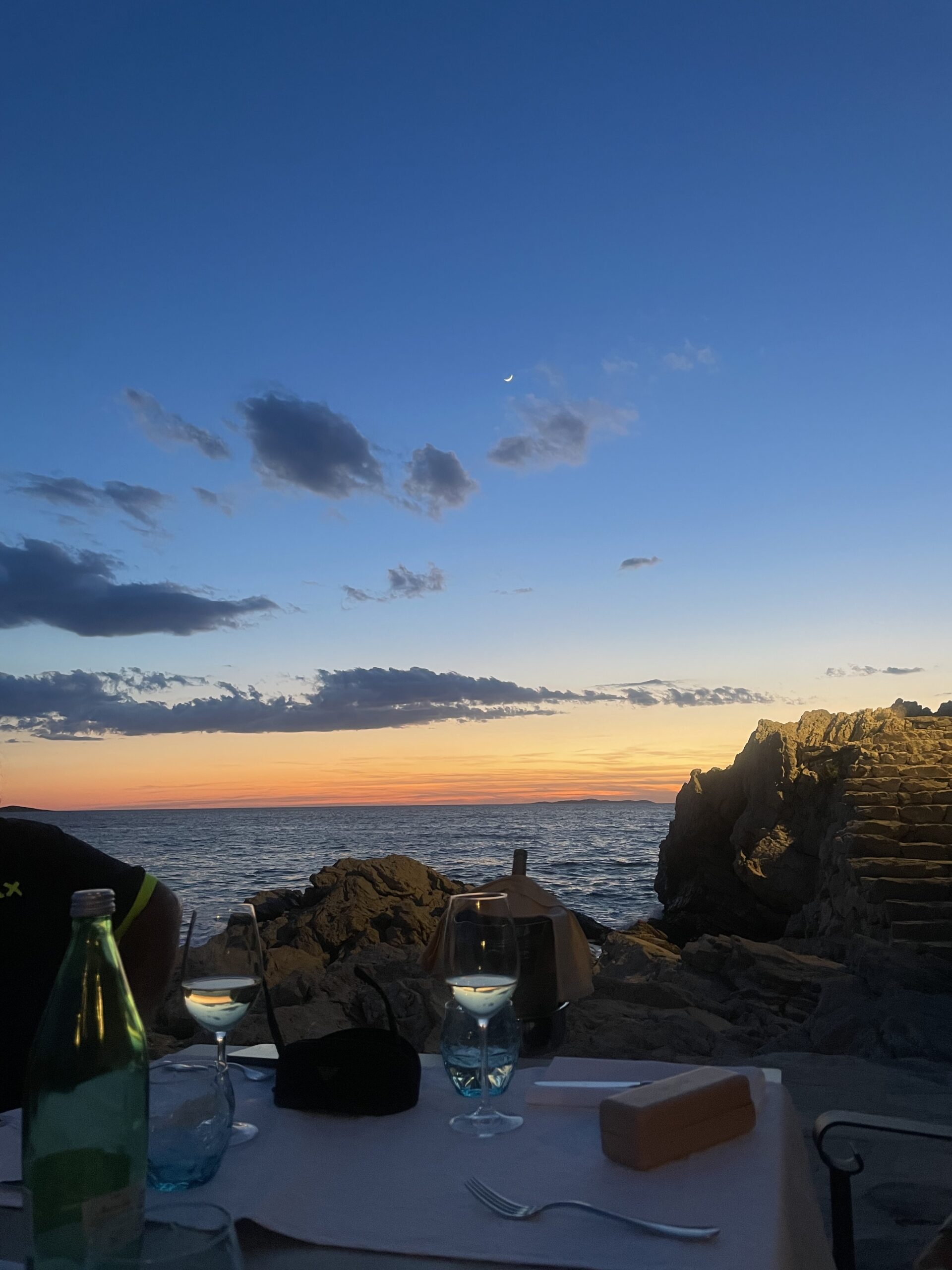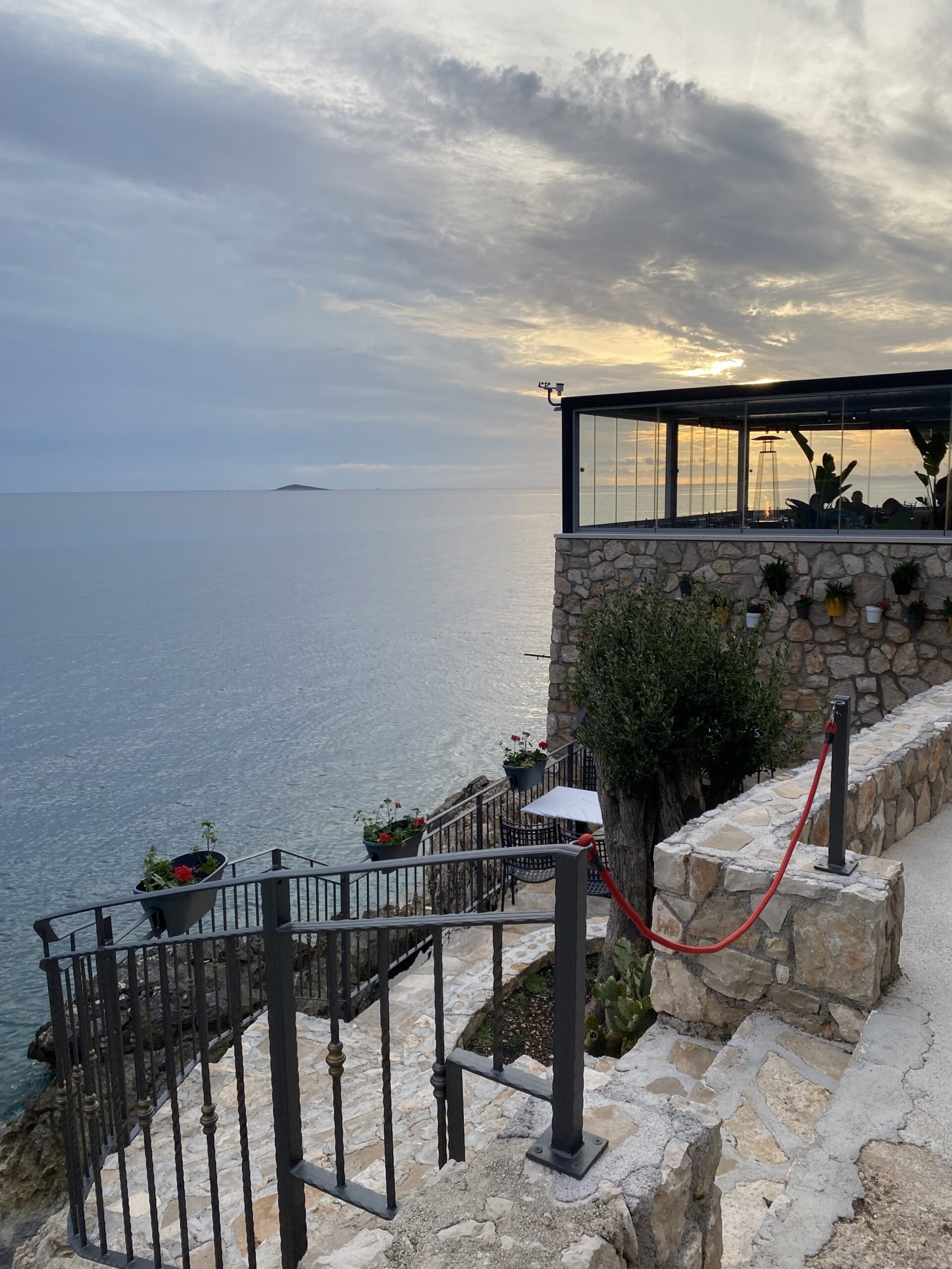Laissez-moi vous parler de ce petit coin de paradis sur lequel je suis tombée lors de mon aventure croate. Perché sur le front de mer, ce restaurant familial donne l’impression d’être invité chez l’habitant, si celui-ci dispose de la vue sur la mer la plus spectaculaire de la ville !